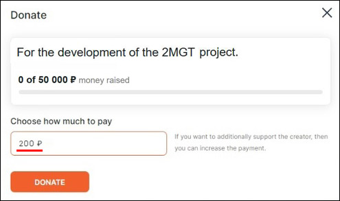 Dear friends, unfortunately, I can only accept your support for the development of the 2MGT project through the Boosty platform.
