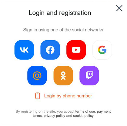2. No registration is required, you can use your social networks. If you have a google account, sign in via google.